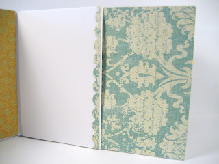 4. The next page is pretty much the same as the inside cover, except for just one difference: it has a flap over the top, which makes the pocket great for storing smaller items in. Notice that the flap is made from the end of the paper used on the previous page. I love the contrast!
